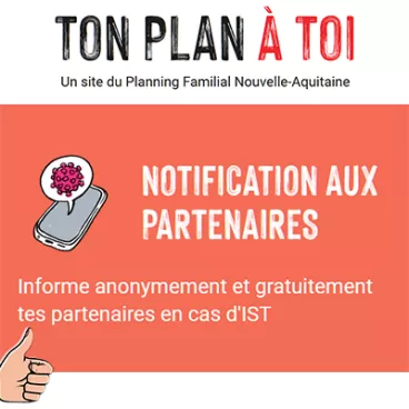 Face à la recrudescence des IST chez les jeunes, le site web néo-aquitain d’information et d’orientation en matière de santé sexuelle et d’égalité, à destination des jeunes de 15 à 30 ans, www.tonplanatoi.fr, s’enrichit d’une nouvelle fonctionnalité : un outil sms gratuit et anonyme de « notification aux partenaires » (NAP) en cas d’IST !